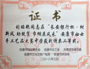 安康市妇女手工艺品刺绣类二等奖